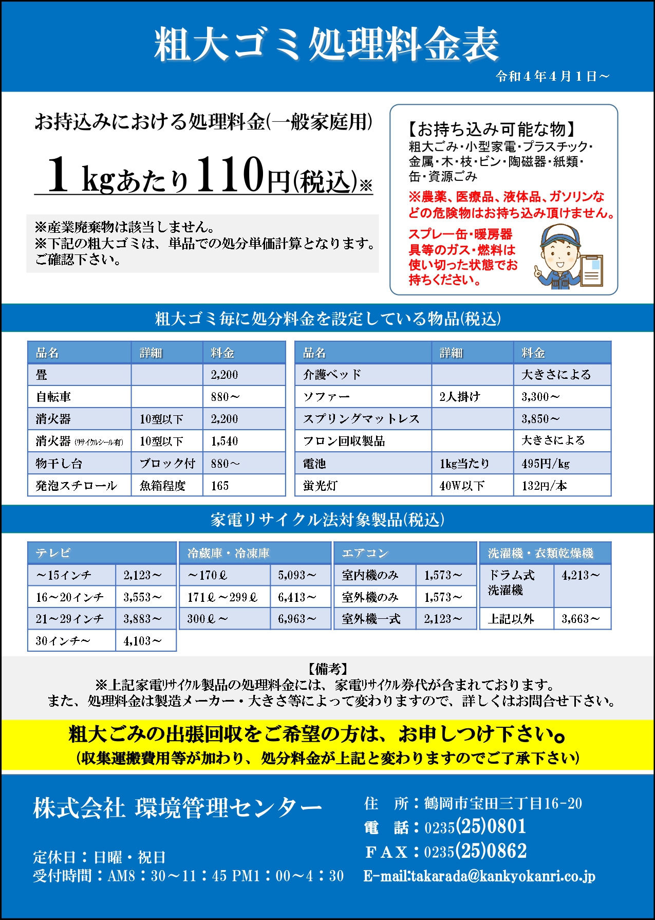 鶴岡市宝田三丁目16−20にて受付ております。トラックスケール(車用の体重計)に乗って頂き、受付用紙に名前・電話番号・車両番号を記載して頂きます。